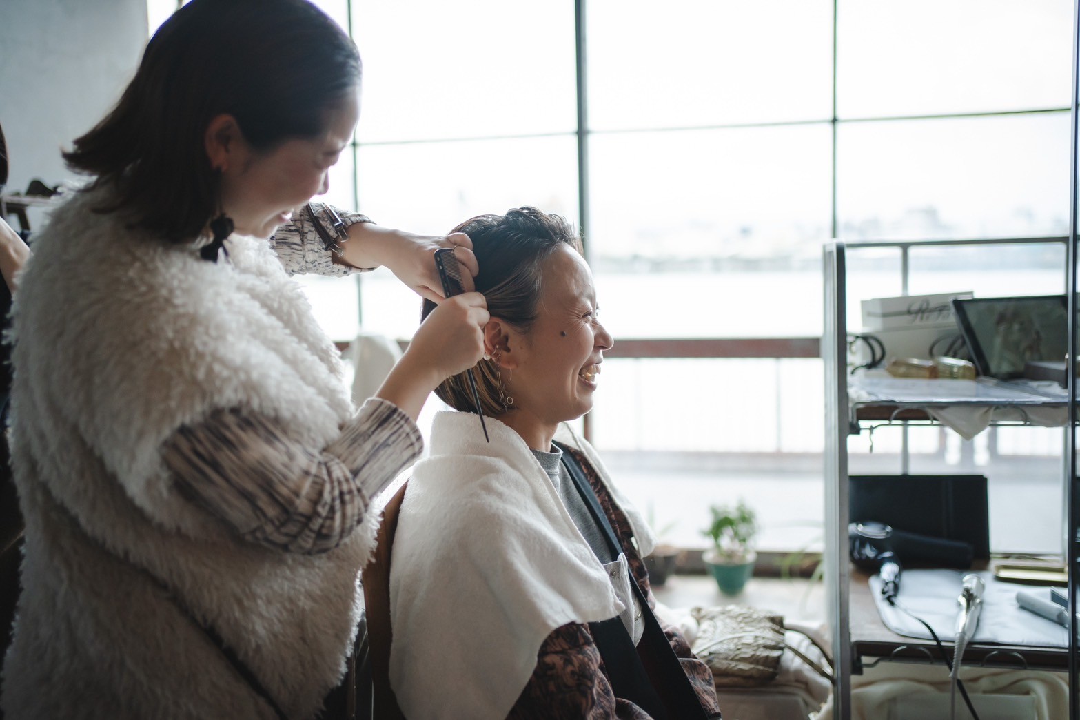 私たちはヘアメイクブースとして